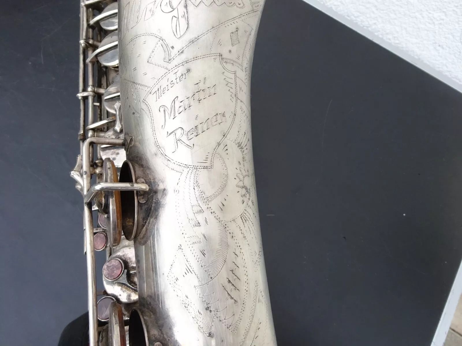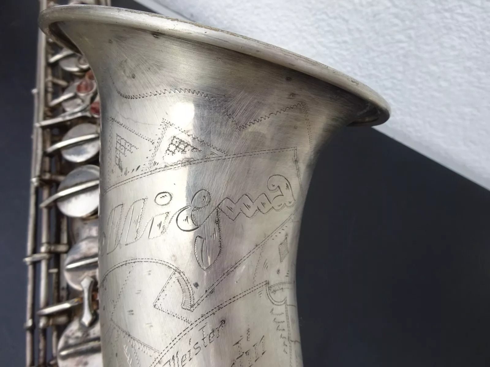 For years I have watched the confusion of English-only speakers/readers as they struggle to make sense of the German acronym: Migma. We see Migma stencilled on the bells of various brands of vintage German saxophones from Franz Köhler to Wolfram, and many names in-between.