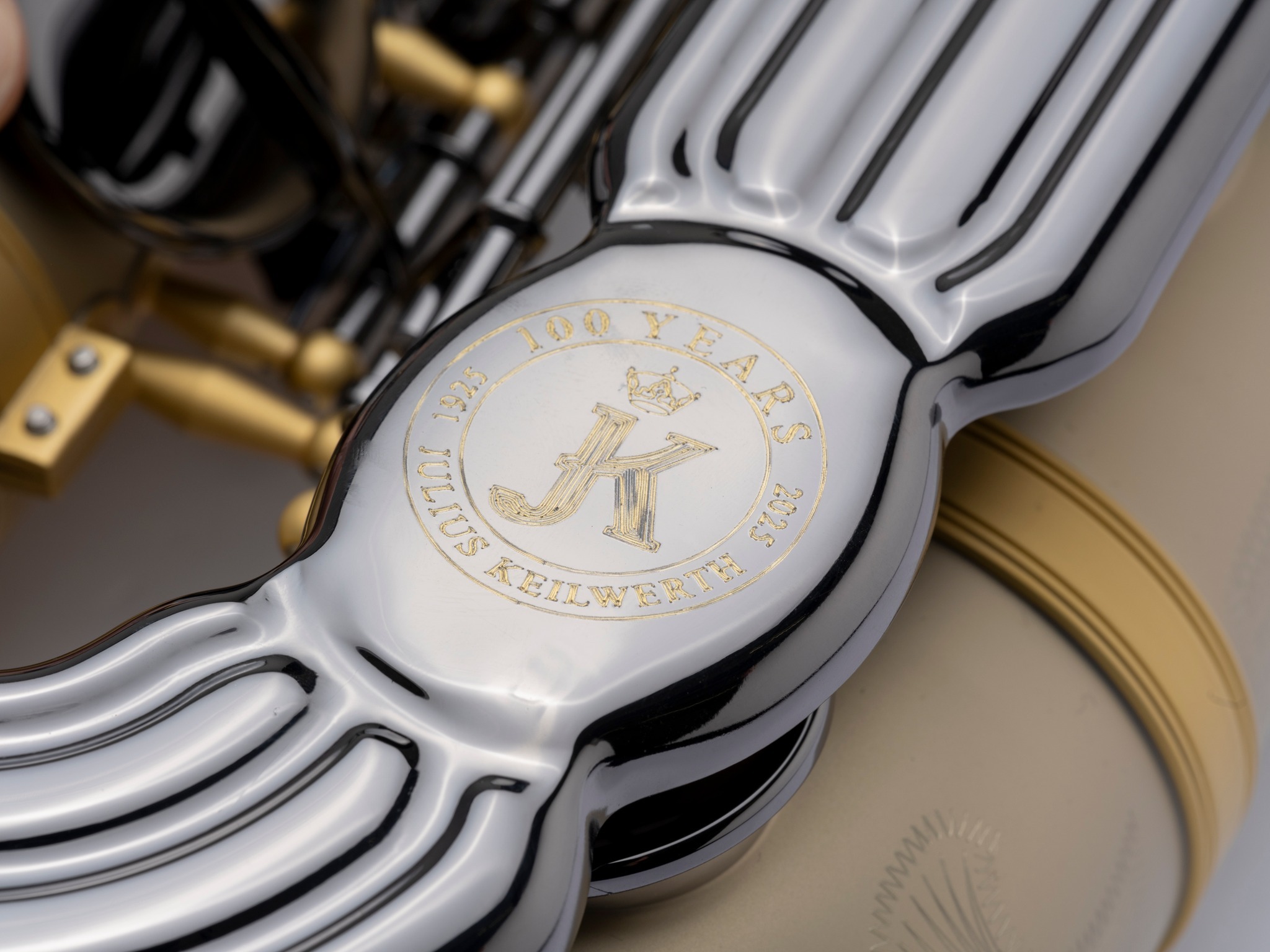Completing this design is the hand engraving to celebrate and personify the 100-year history of quality and craftsmanship for which the Julius Keilwerth brand is known.
