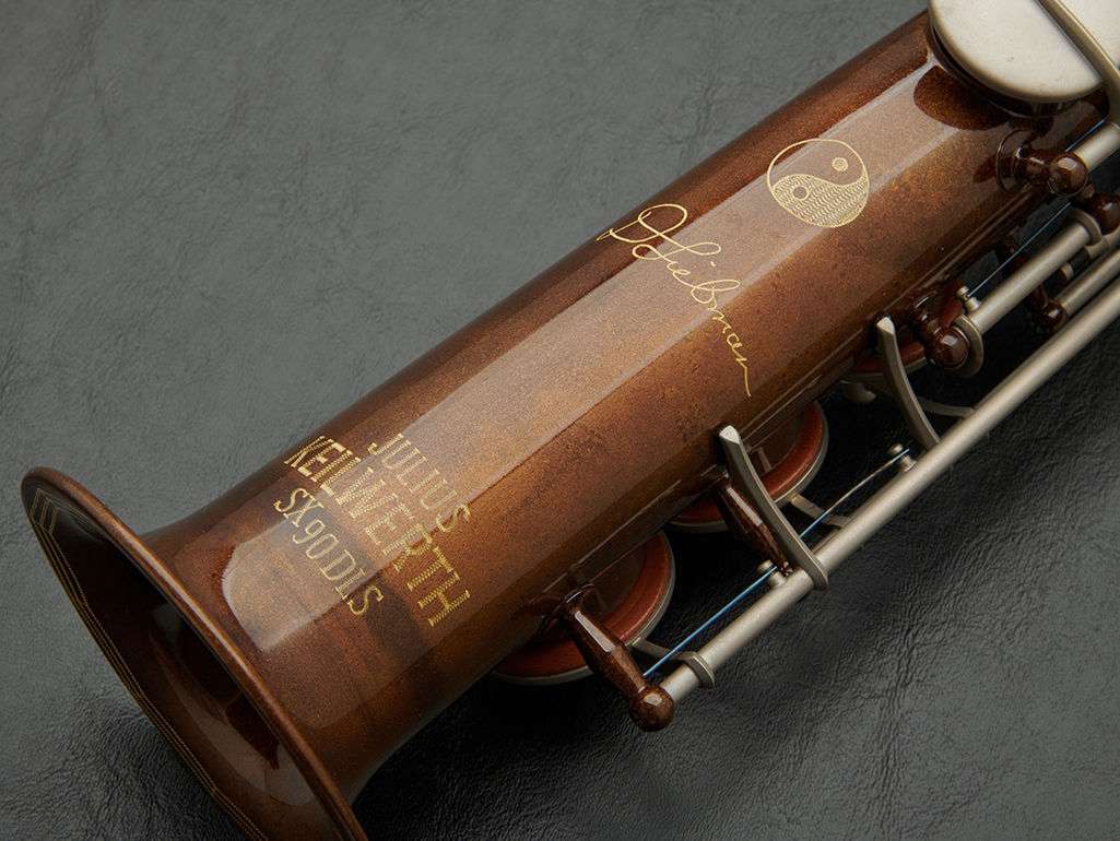 The SX90DLS model is for those who appreciate the instrument presented exactly as used by the artist who has inspired it. Additional features include cork pads on all upper keys, including palm and register keys. The thumb rest is padded for added comfort during extended performance. All engraving is done by hand and has been designed by Dave Liebman including a hand engraved D. Liebman Signature on the bell.