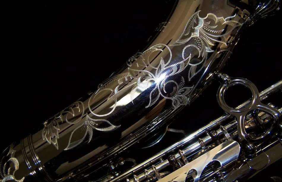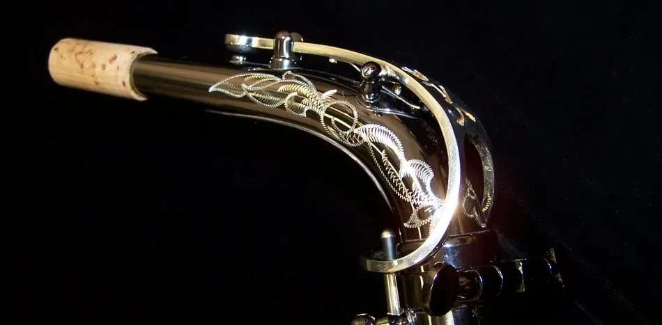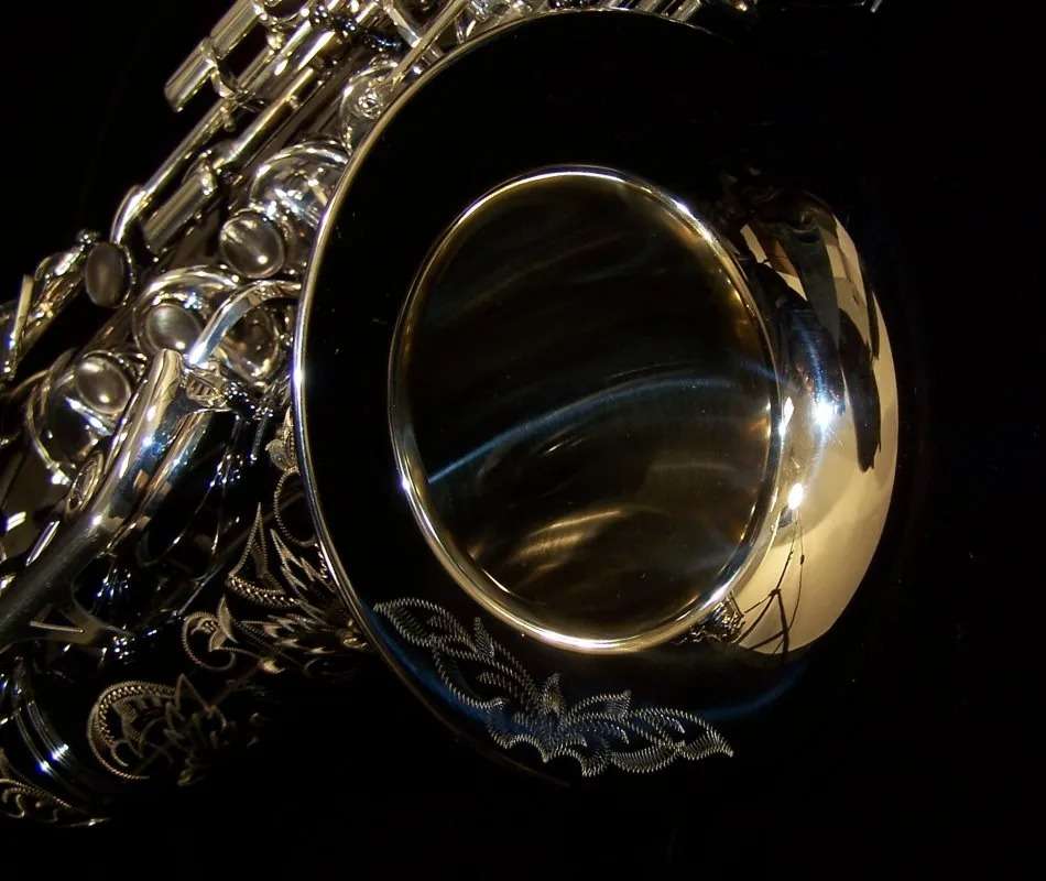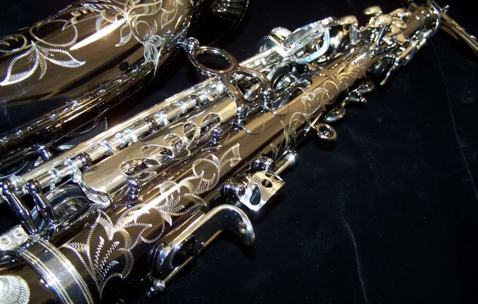 The SX90R Shadow saxophone pushes the limits of design and performance. The body is made of German nickel silver that resonates strongly and responds quickly to the players demands. Black nickel plating coats the body adding depth to the well centered and powerful sound. The inner bell and key work are silver plated to highlight the extensive hand engraving for a vibrant and dazzling appearance. From the small, intimate club to a concert arena for thousands of fans, the SX90R Shadow saxophone lets the player take control and offers limitless potential for expression and sound.