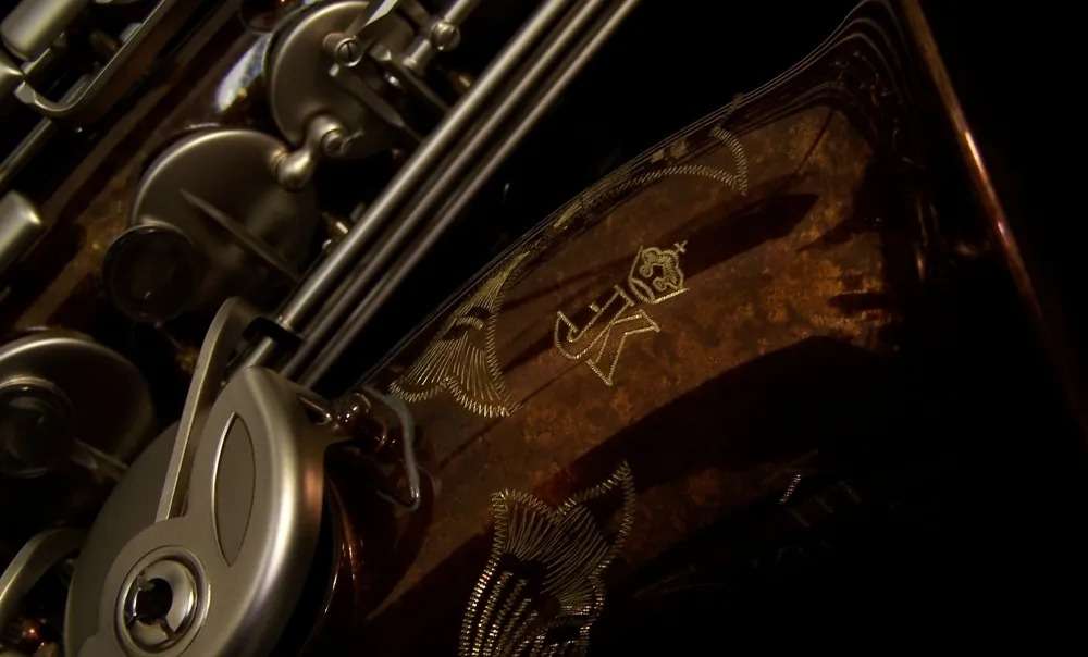 The SX90R Vintage saxophones have a unique finishing method that creates an individual appearance and natural tone. Through our exclusive treating process, the raw brass will oxidize and patina to bring out its natural beauty and character. After precise engraving the instrument is coated in clear lacquer to seal in the finish.