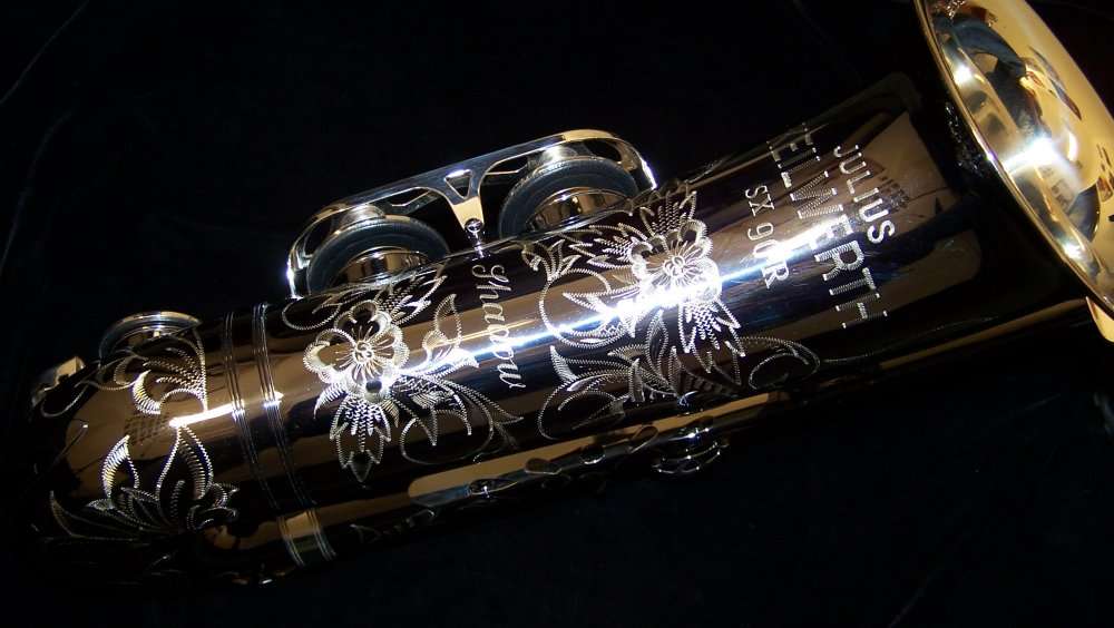 The Black Nickel plated body is complemented with gold lacquered keys and meticulous hand engraving to offer a look and sound that cannot be duplicated by any other. The tone is warm and expressive and resonates full and clear, allowing each player to create a personal identity and voice.Source: Passion: Saxophones. Julius Keilwerth Saxophones.