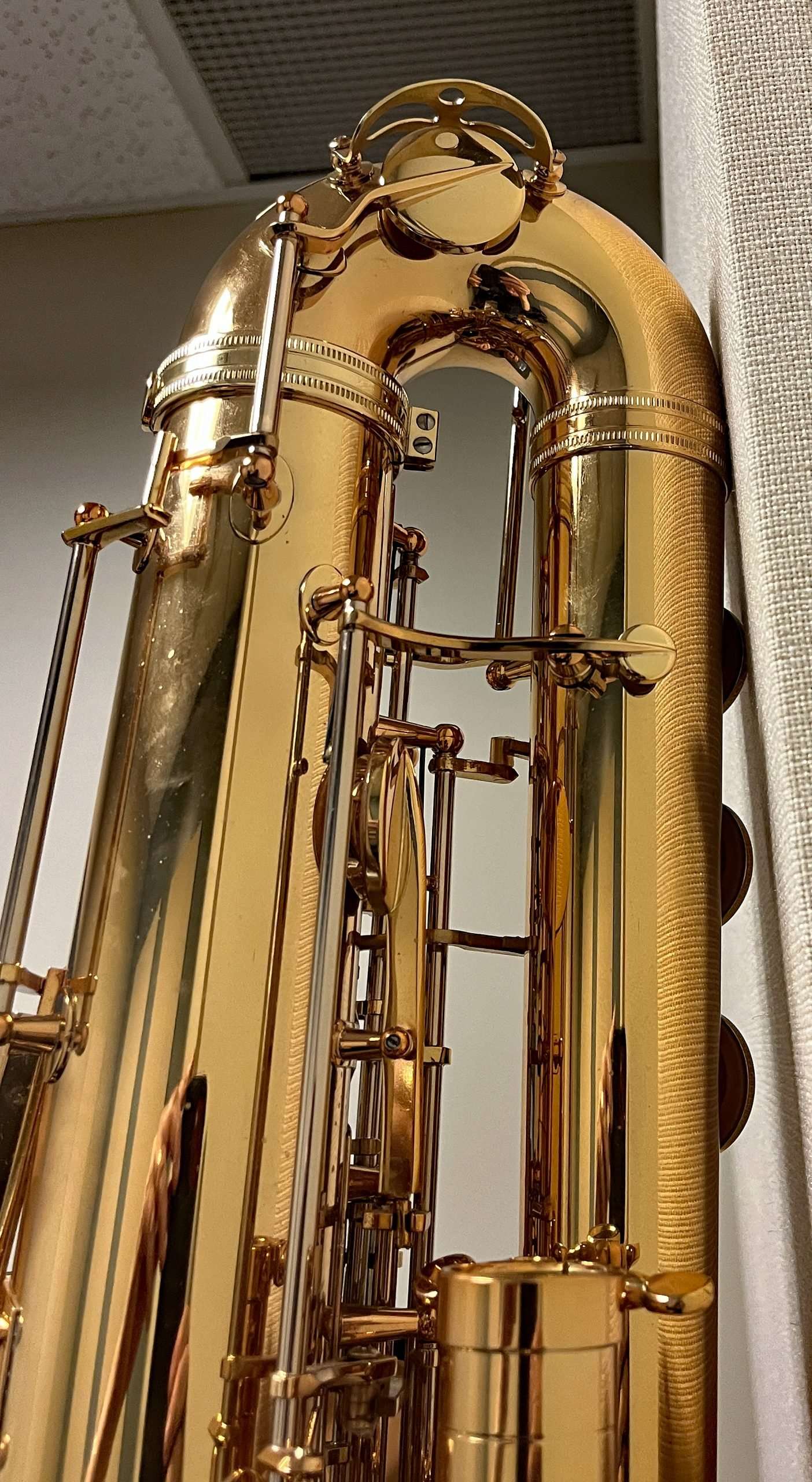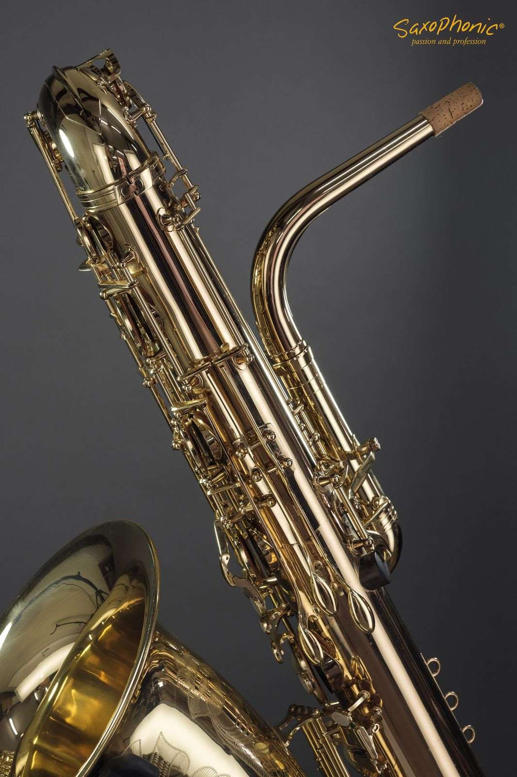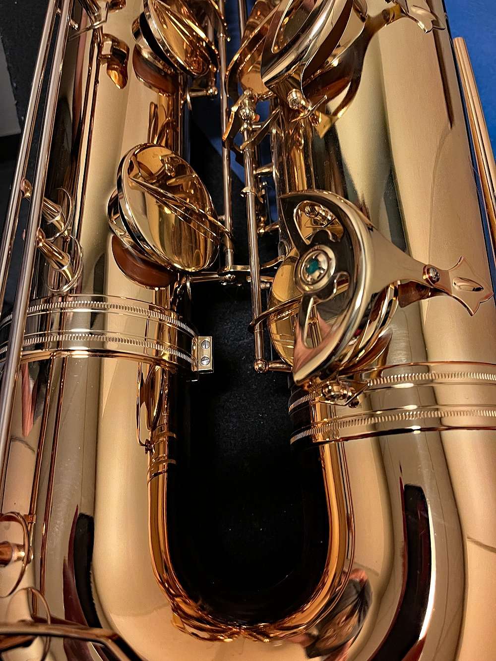 - Appears to be a copy of the current production Selmer Series II bass saxophone