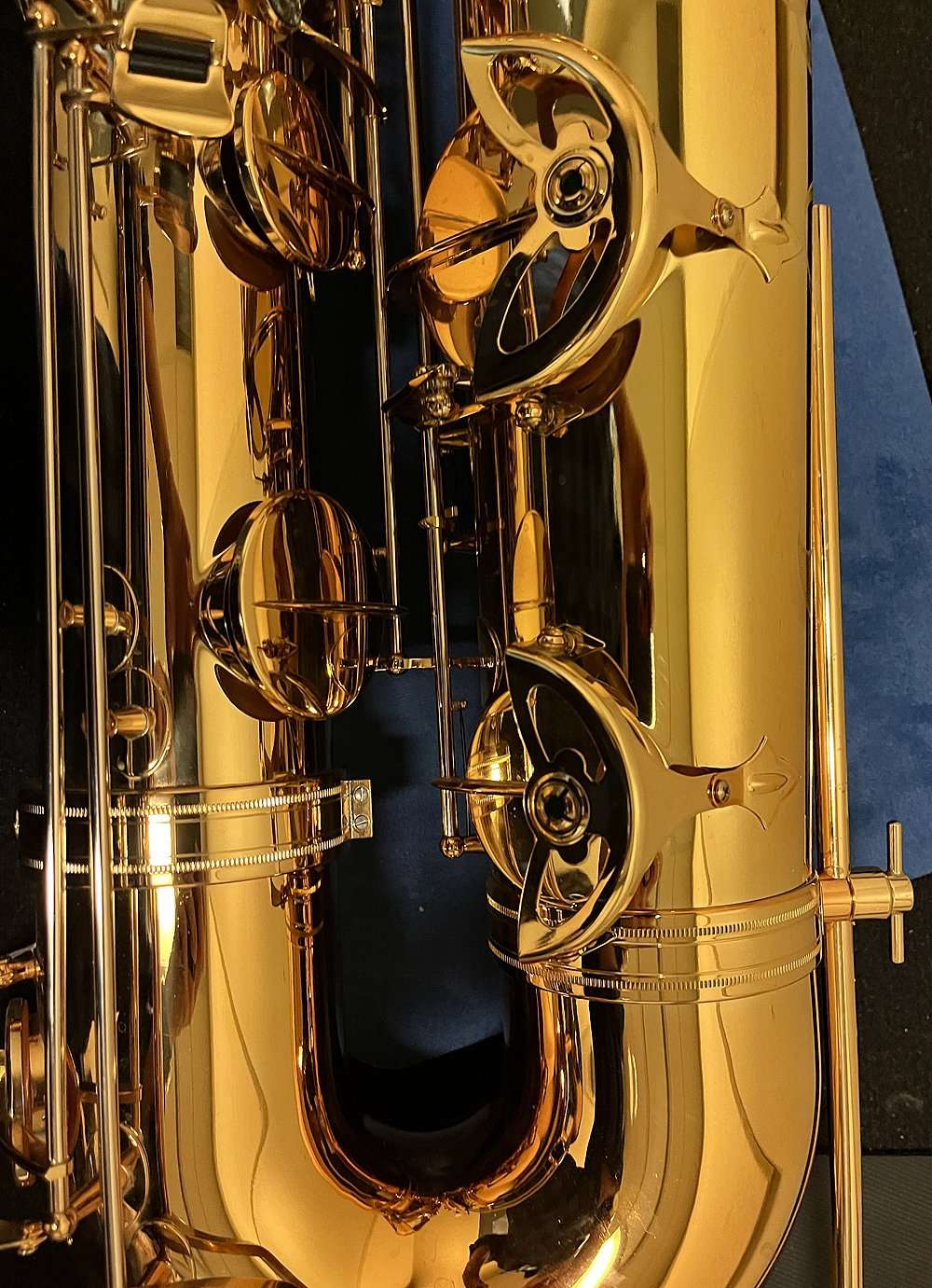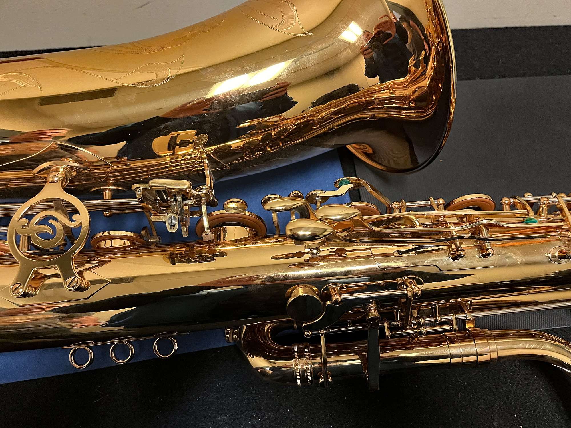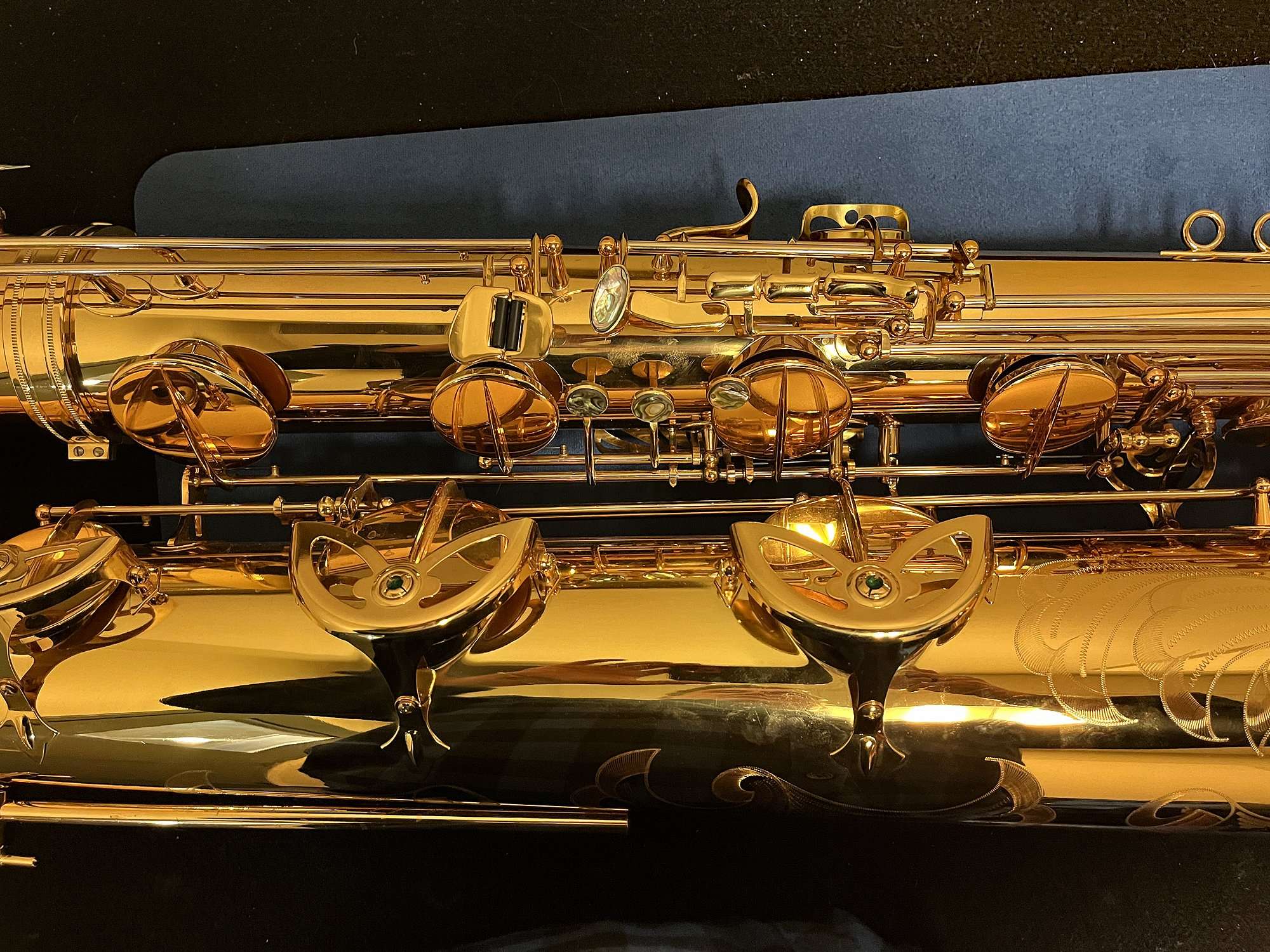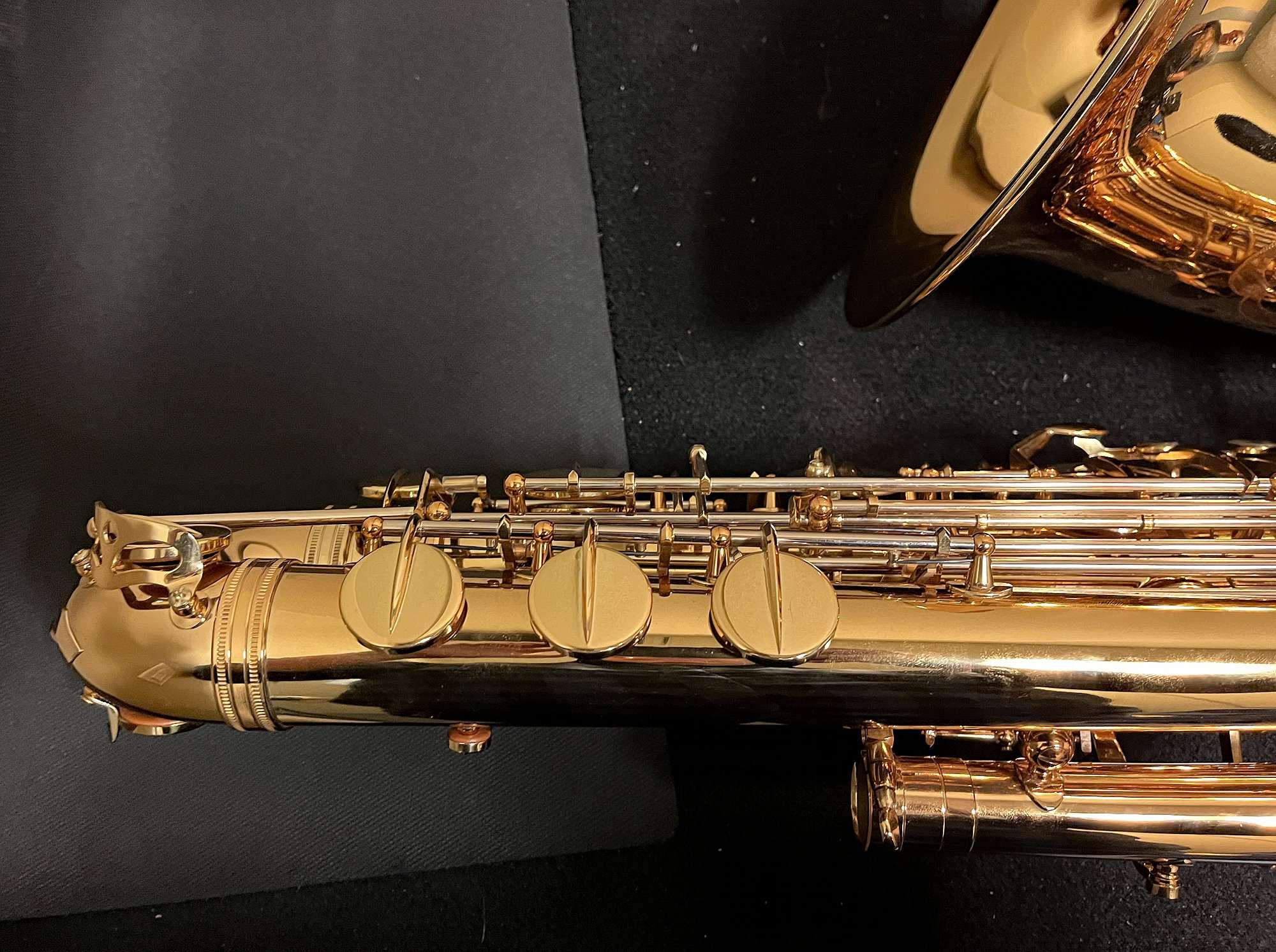 - Appears to be a copy of the current production Selmer Series II bass saxophone