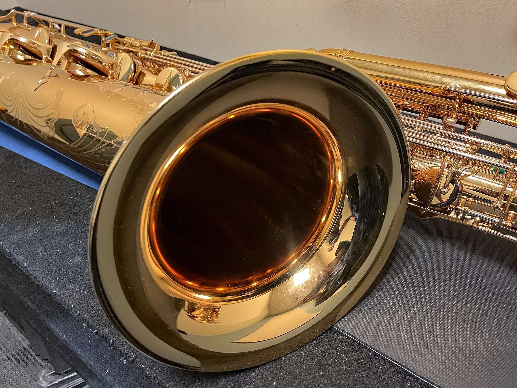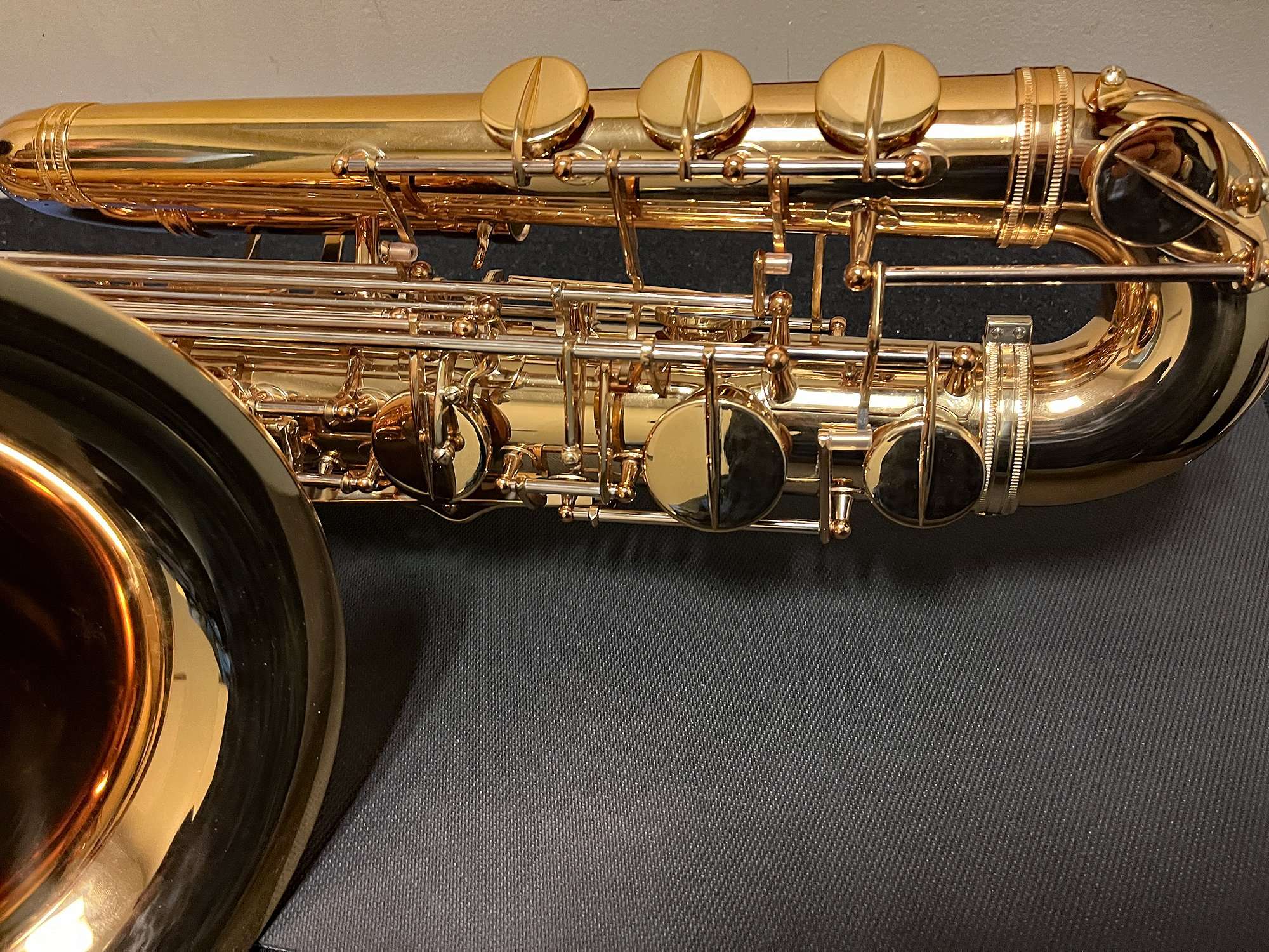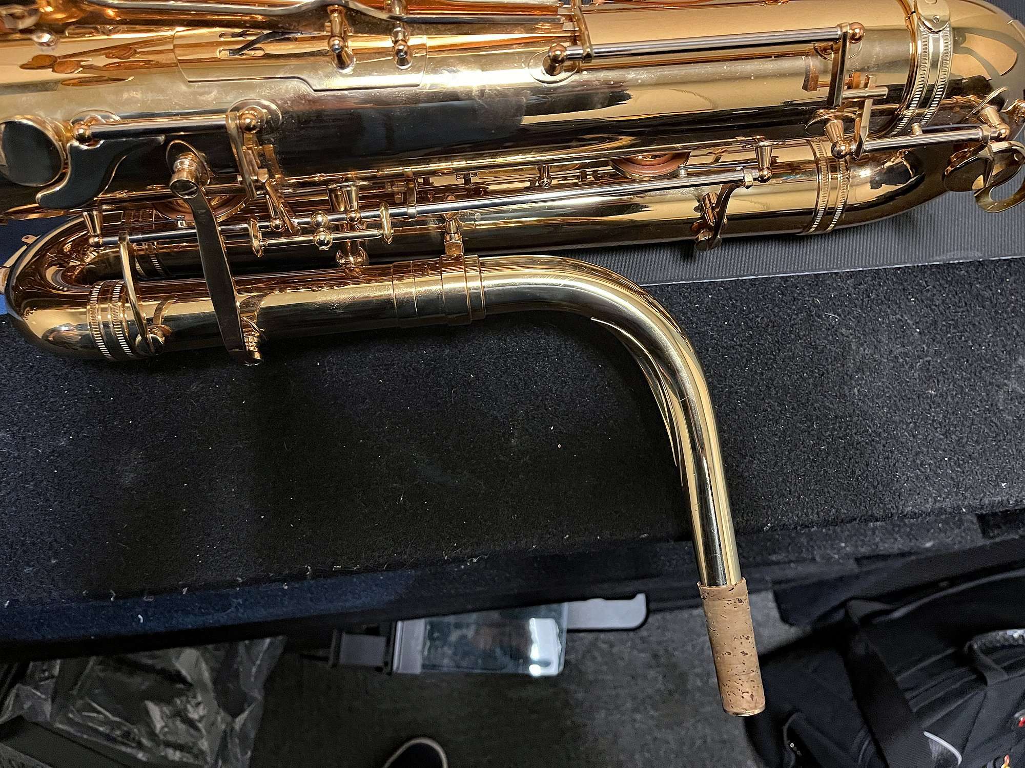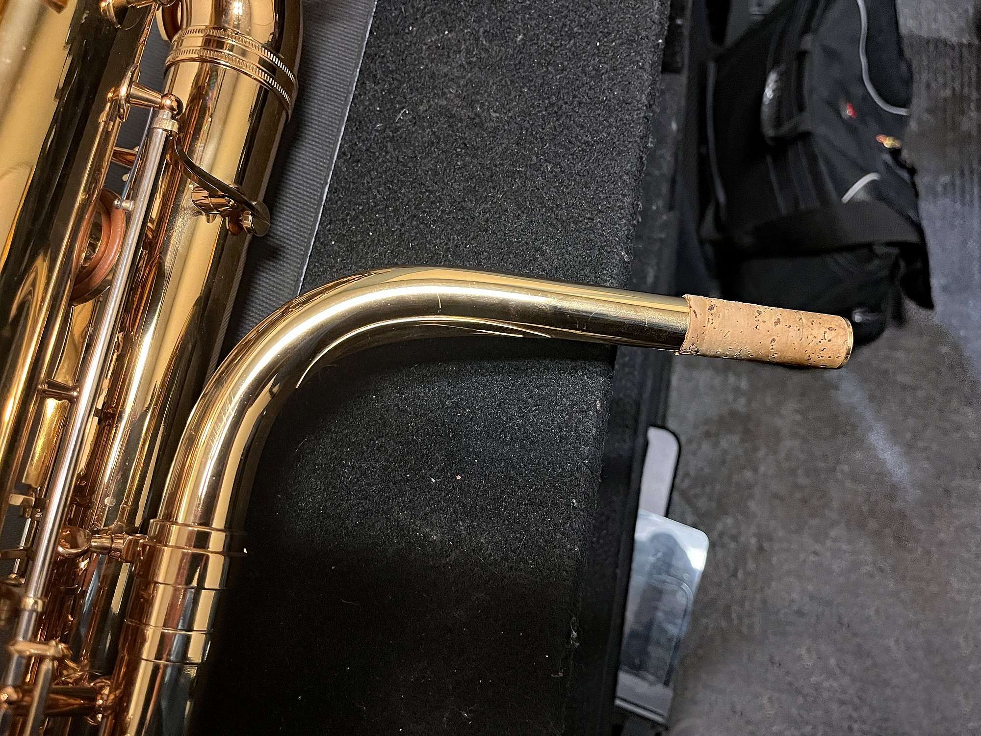- Because it doesn’t have a bell to body brace on the lower portion of the horn like the Jinbao-made Sakkusu has, there was no good way to pick the horn up. Trying to find a way to pick this monster up without putting pressure on the keys was a real challenge. Both Rob and I worked real hard not to knock things out of alignment more than they may have already been.