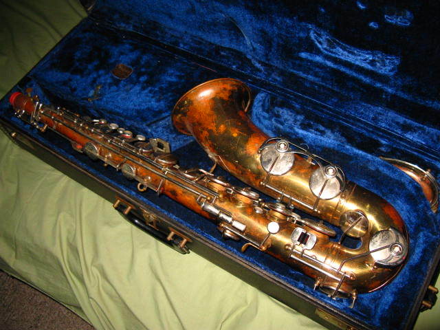 This is what it looked like after the late Steve Stransky, AKA Sarge, at World Wide Sax was done with it. It’s not pretty, but it’s smooth as a baby’s bottom now.