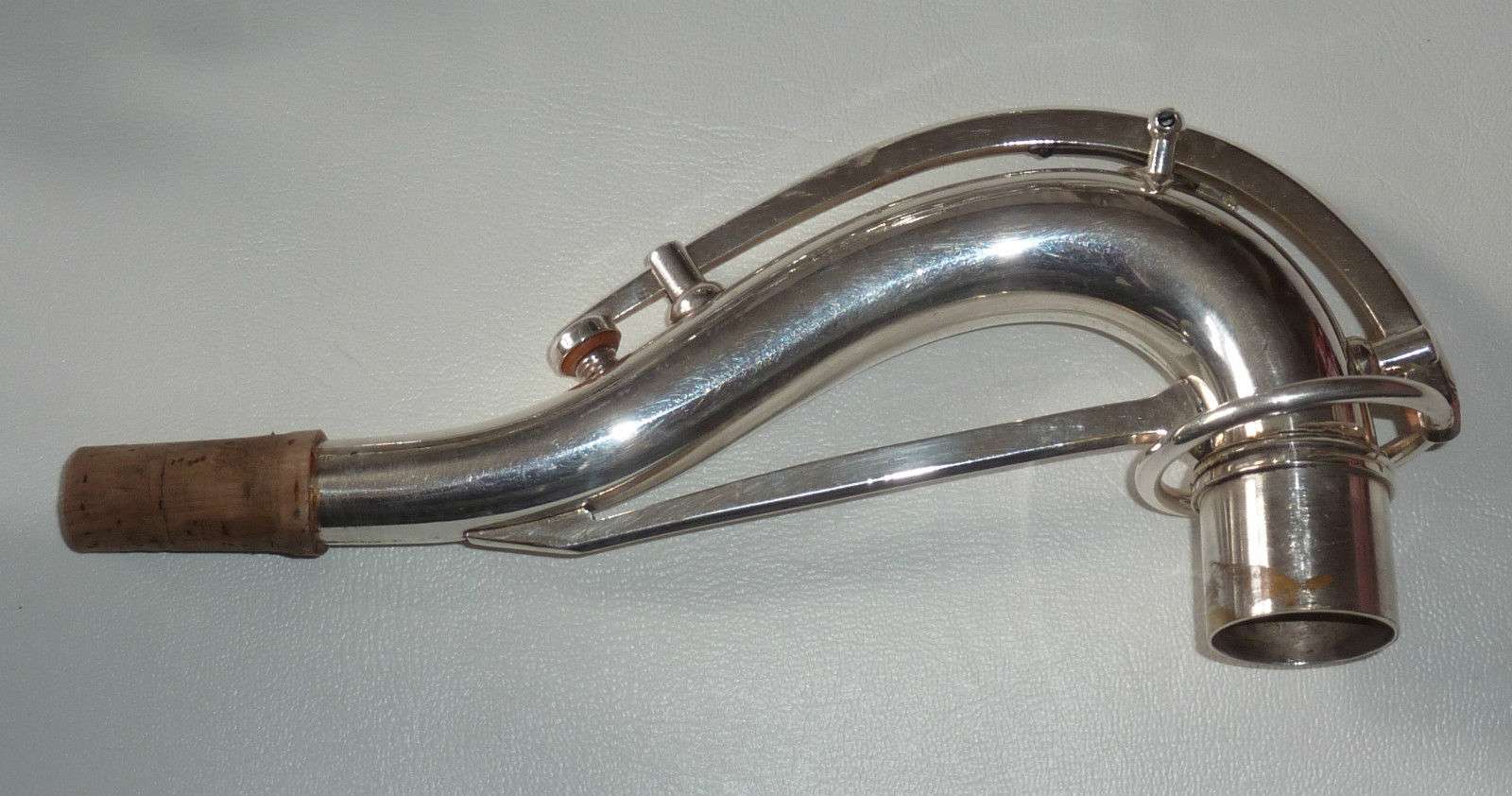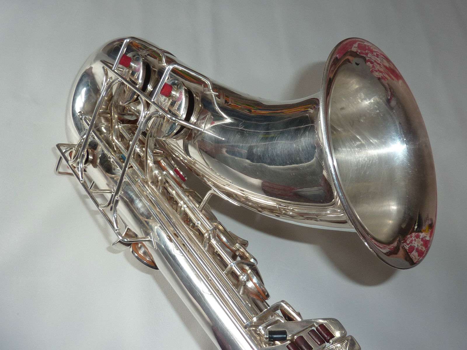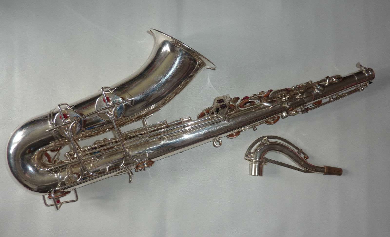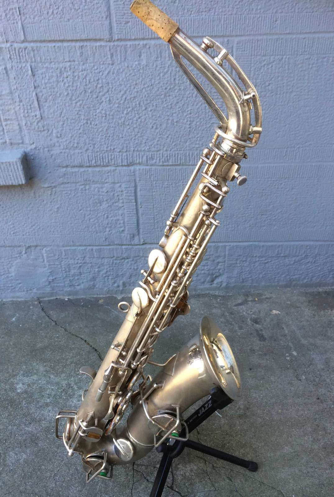 The original silver plated body of the saxophone is in pristine physical condition. It shows no signs of ever receiving any major cosmetic damage in the past. The bell flare, bow and body tube are all in outstanding shape. It also includes the original neck in very good condition. The neck has never been pulled down or bent in the past. The pads on the saxophone appear to all be the original leather pads. This instrument is in fantastic condition but it will need a full pad job before it will be ready for serious playing.