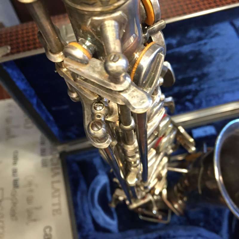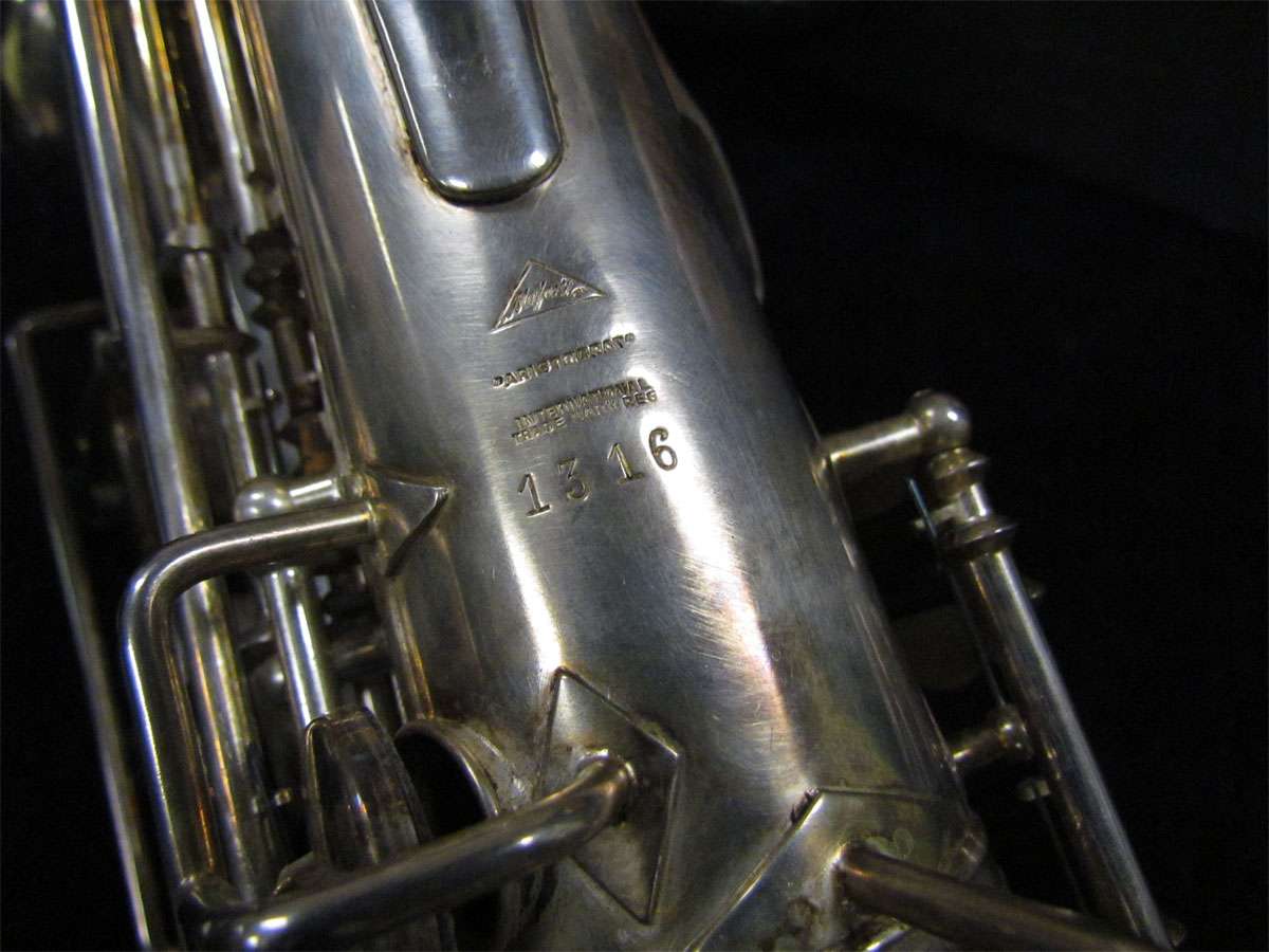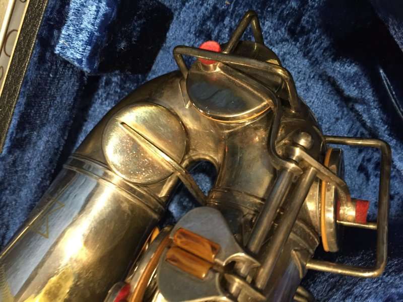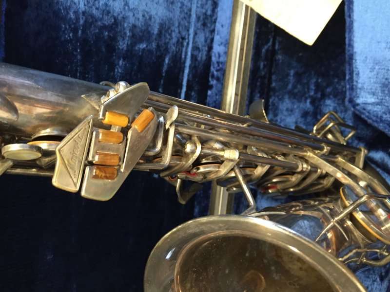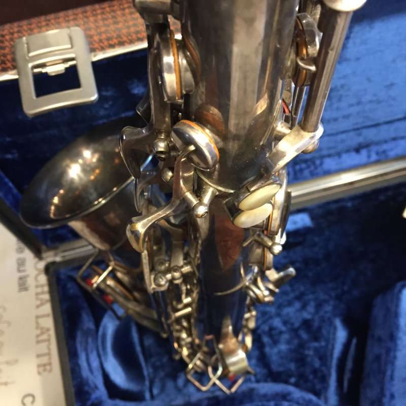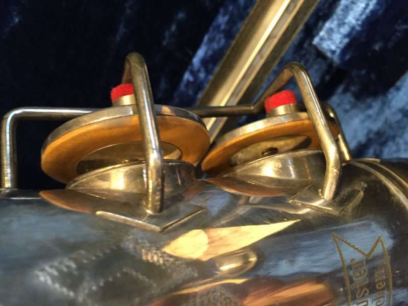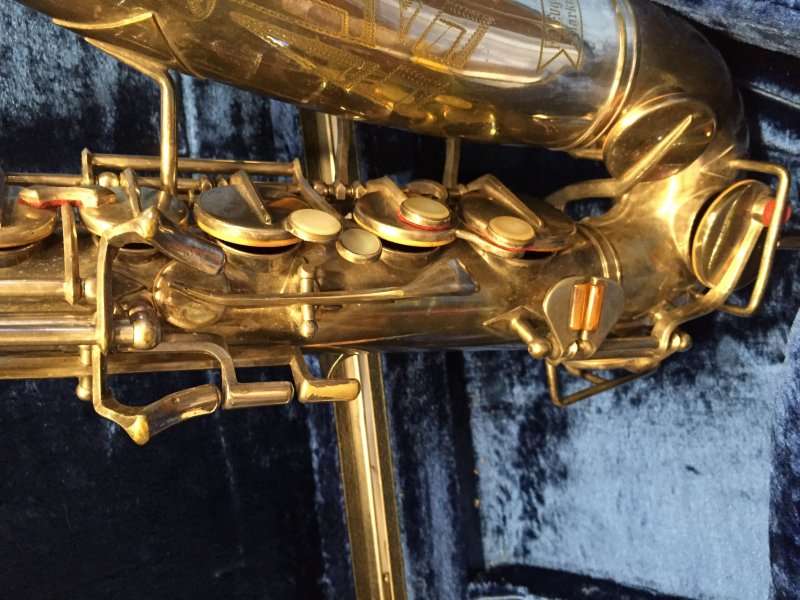 Note the microtuner on alto #929 above. Not all altos had them. Alto #1316 shown at the very top of the page didn’t have one. Even altos with earlier serials such as #574 and #743 that I have seen, didn’t have them. So far I haven’t seen a microtuner on any tenors.