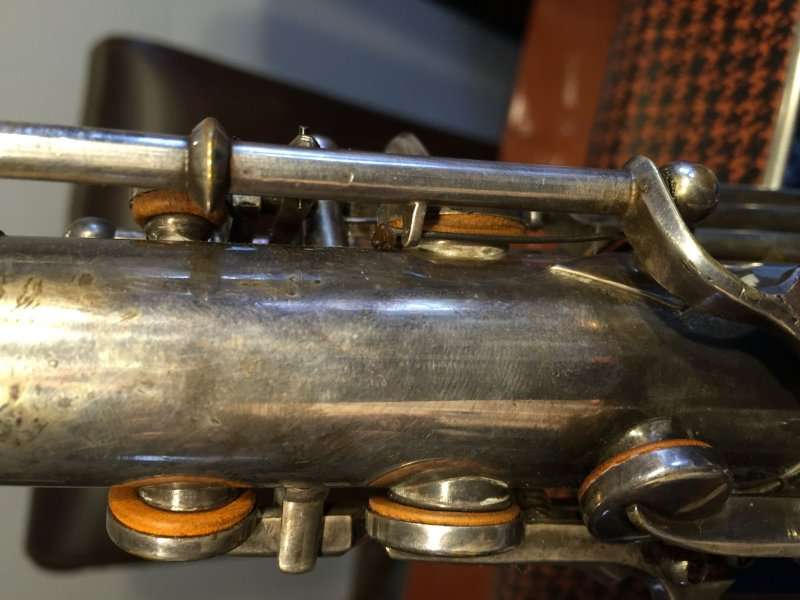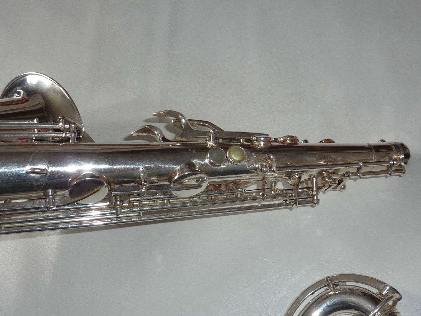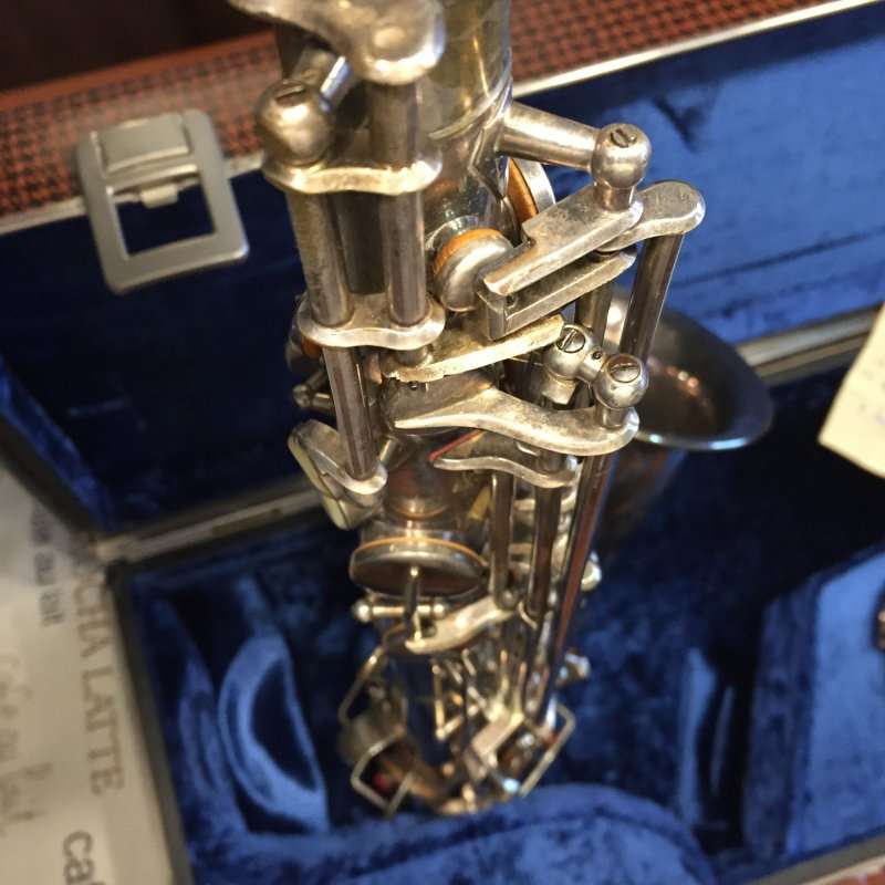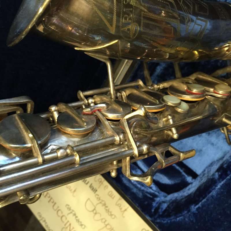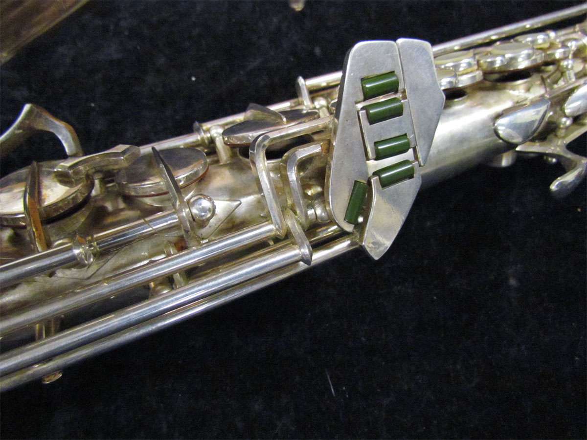 Note the microtuner on alto #929 above. Not all altos had them. Alto #1316 shown at the very top of the page didn’t have one. Even altos with earlier serials such as #574 and #743 that I have seen, didn’t have them. So far I haven’t seen a microtuner on any tenors.