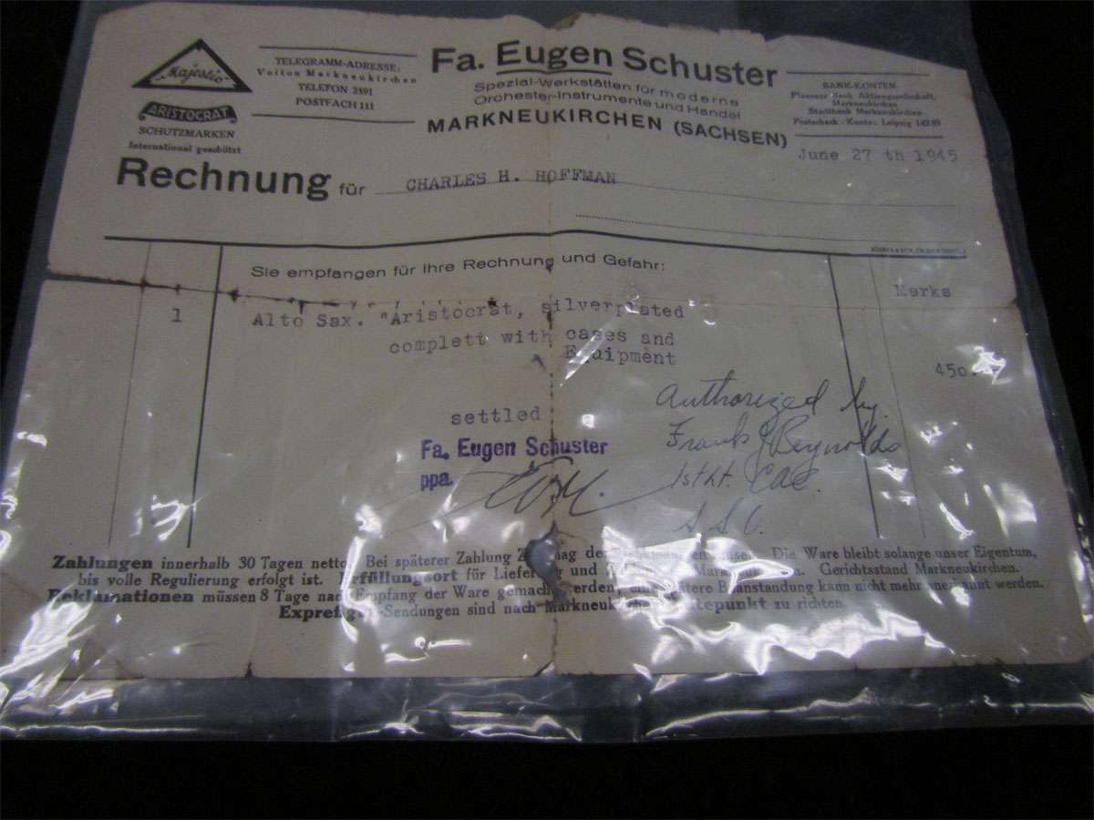 Eugen Schuster Majestic Aristocrat alto #1316 with original sales receipt from June 27, 1945